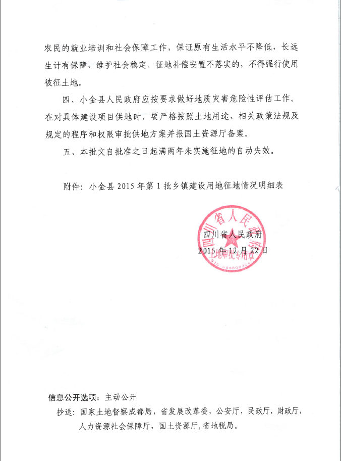 关于阿坝州毛尔盖河剑科水电站工程建设用地的批复